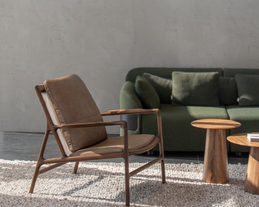 Fauteuil Dedo Easy Chair en chêne massif, cordage et coussins amovibles au design élégant.